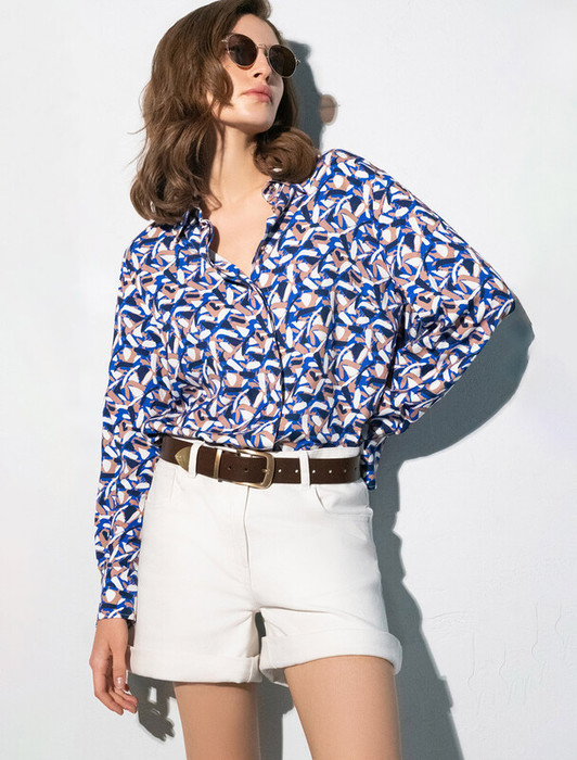 Vilatte Блузка из вискозы твил D29.265 синий-бежевый