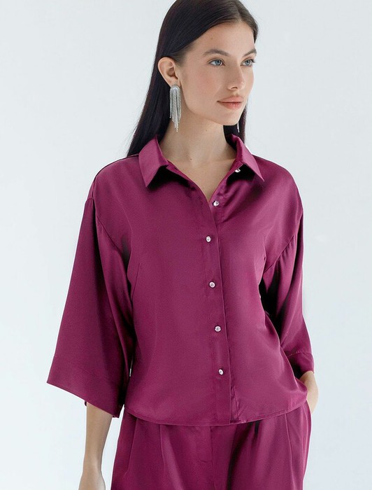 — 27.03 Vilatte Блузка с короткими рукавами из плотного струящегося сатина D29.28