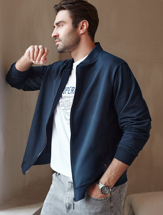 — Vilatte Бомбер из тонкого премиального футера с эластаном U49.034 т.синий