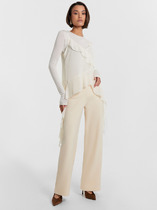 Брюки выполнены из плотного лиоцела. Добавление синтетических волокон в составе изделия предотвращает сминаемость. Эластичный пояс на резинке с регулируемым шнуром комфортно фиксирует изделие не сковывая движений. Модель дополнена боковыми карманами и металлическим логотипом бренда. Для создания завершенного образа сочетайте в костюме с топом D23.058, блузкой D28.054, D29.238, D29.239 и D29.240