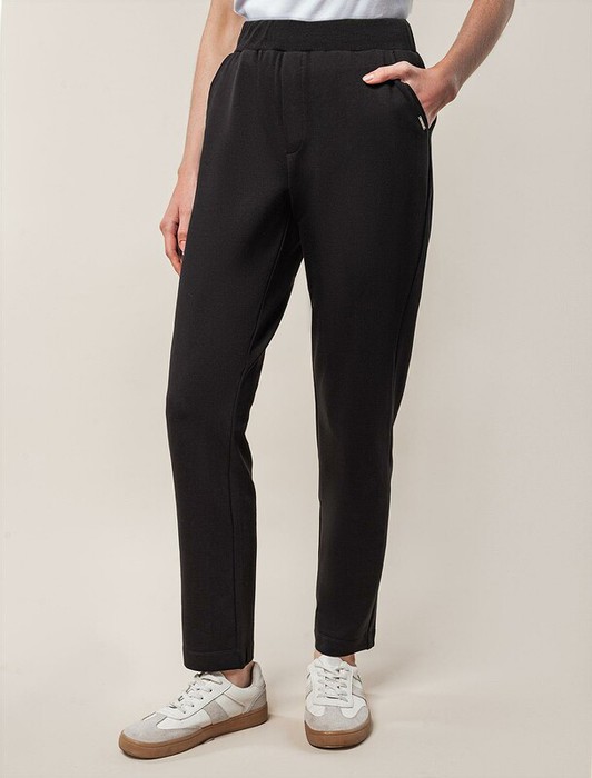 Брюки выполнены из премиального хлопка с эластаном. Лаконичная модель дополнена эластичным поясом на резинке, двумя боковыми карманами и одним задним карманом. Мягкий хлопковый эластичный трикотаж хорошо пропускает воздух и поддерживает оптимальный микроклимат. Изделие универсально подойдет для спорта, повседневного аутфита и домашней одежды.