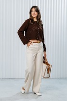 Удобная посадка подчеркивает фигуру, а свободный крой создает эффектную форму "мом". Особый шов сзади без отстрочки добавляет лаконичность дизайну. Брюки не сковывают движений и приятны к телу. Универсальная коричневая расцветка легко комбинируется с любым верхом – от объемных свитеров до облегающих топов. Идеальный вариант для создания как повседневных, так и более нарядных луков с ноткой дерзости. Практичный материал не мнется и устойчив к износу, делая эти брюки must-have в вашем гардеробе.