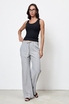 Брюки выполнены из хлопкового твила. Изделие дополнено двумя вариантами шлёвок, что позволяет использовать ремни разной ширины. Модель имеет два боковых и один задний карман. Защипы у пояса и стрелки вдоль брючины визуально вытягивают силуэт и подчеркивают талию. Благодаря наличию эластана в составе изделие сохранит свой безупречный внешний вид в течение долгого времени. Обладает высокой воздухопроницаемостью, в брюках будет комфортно даже в жаркое время года.