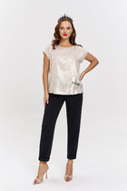 Брюки выполнены из плотного лиоцелла. Модель дополнена карманами и высоким поясом на пуговицах. Ткань изделия отлично держит форму, плавно драпируется и не просвечивает. В теплое время года приятно охлаждает кожу. Добавление синтетических волокон в составе изделия, предотвращает сминаемостьи поддерживает формоустойчивость. Брюки сочетаются в костюме с топом D23.063 и блузкой D29.266, D29.267 и жилетом D27.002