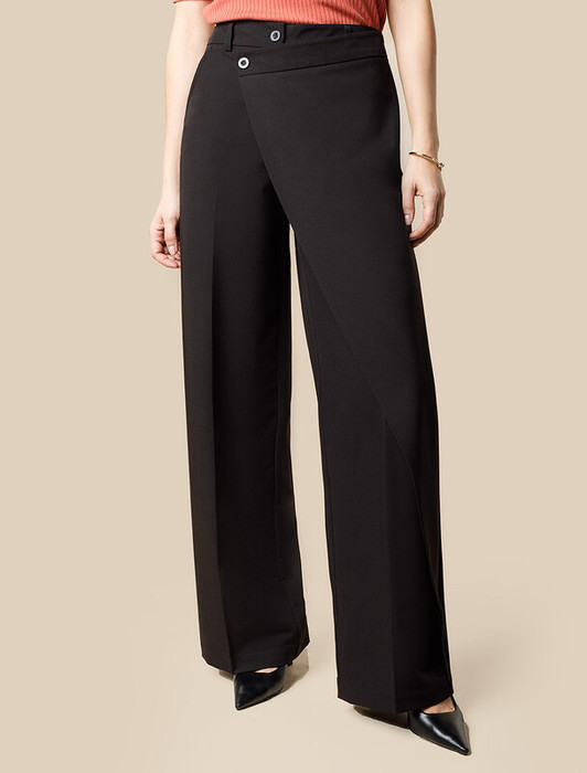 Брюки свободного кроя выполнены из эластичной поливискозы. Модель с трендовой застежкой на запАх моментально делает образ стильным, скрывает недостатки и подчеркивает достоинства фигуры. Легкая и струящаяся ткань идеально подойдет для повседневных образов и впишется в офисный дресс код. Свободный силуэт подходит для любой фигуры.