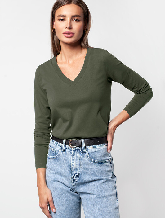 Совместные покупки Омск Женская одежда Джемперы, свитеры, водолазки — 27.03 Vilatte Джемпер из премиального хлопка с эластаном D49.958 темно-оливковы