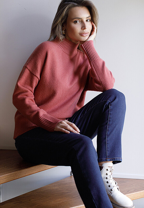 Совместные покупки Омск Женская одежда Джемперы, свитеры, водолазки — Vilatte Джемпер из пряжи с кашемиром D34.202 темно-коралловый