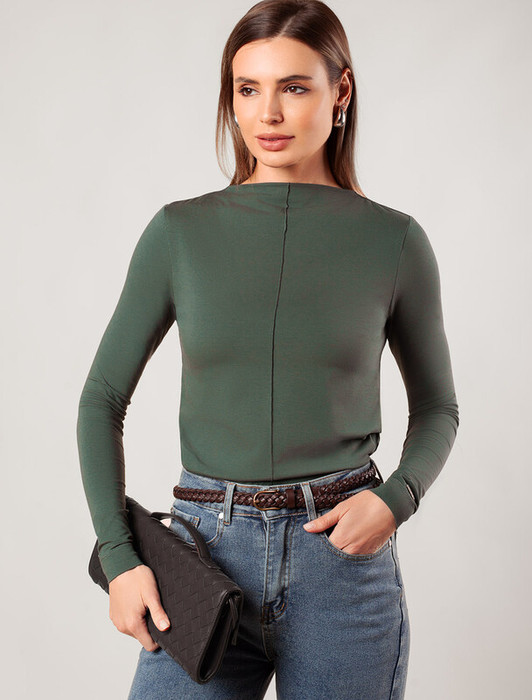 Совместные покупки Омск Женская одежда Джемперы, свитеры, водолазки — Vilatte Джемпер с цельнокроеным воротом из премиального хлопка D49.113 оливковый