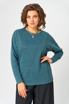 Джемпер с вырезом лодочкой и прозрачными рукавами создает женственный и элегантный образ. Тело джемпера черного цвета выполнено из плотного вискозного трикотажа, обеспечивающего комфорт, в то время как рукава из тонкой сетки создают стильный контраст. Глубокий вырез лодочка подчеркивает линию плеч и создает элегантный силуэт. Идеальный выбор для стильных образов!