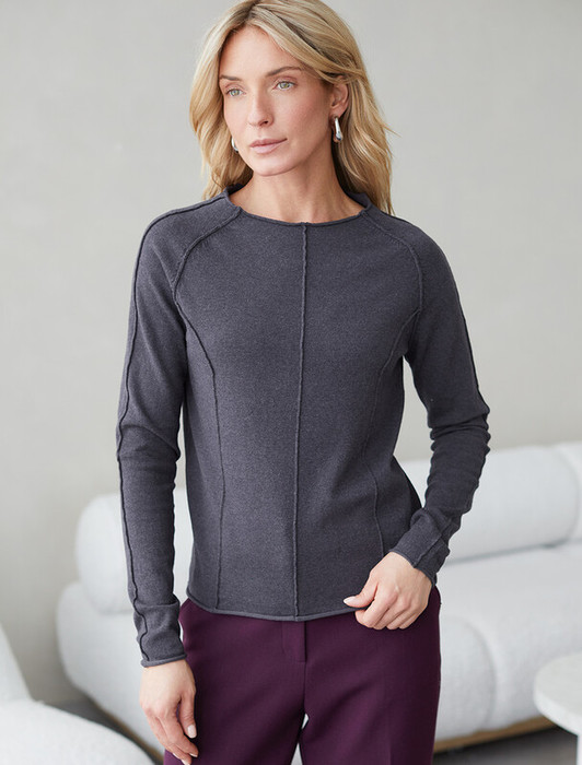 Джемпер тонкой вязки выполнен из мягкой хлопковой пряжи. Модель с декоративными швами идеально сидит по фигуре подчеркиваяч изгибы тела. Подходит для любой фигуры и впишется в любой гардероб. Изделие дополнено металлическим логотипом бренда.