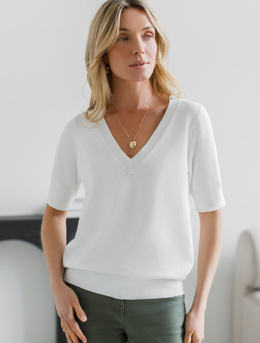 Совместные покупки Омск Женская одежда Джемперы, свитеры, водолазки — Vilatte Джемпер тонкой вязки из вискозы с нейлоном D39.355 натуральный белый