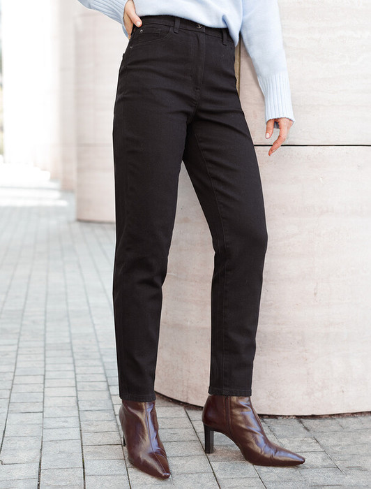 Совместные покупки Омск Женская одежда Джинсы — Vilatte Джинсы мом фит из мягкой эластичной джинсы 13,5OZ D54.304 черный