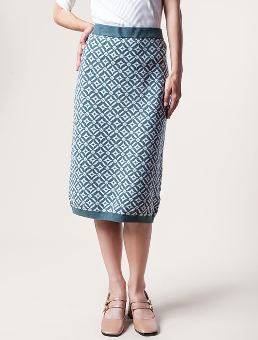 Юбка карандаш выполнена из эластичной поливискозы. Жаккардовое переплетение с геометрическим узором и прямой силуэт визуально стройнят и делают фигуру гармоничной. Мягкое и приятное изделие совершенно не колется и приятное к телу. Сочетайте в костюме с джемпером-поло D39.634 или жакетом D31.388. А также как самостоятельный элемент в комплекте с белой блузкой или светлым жакетом.