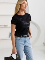Нарядная футболка с принтом из премиального хлопка с эластаном