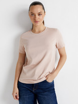Футболка выполнена из премиального хлопка с эластаном. Лаконичный принт выполнен россыпью сияющих страз в тон изделия. Модель среднего объема дополнена подворотами на рукавах. Подходит для любого типа фигуры. Изделие дополнено металлическим логотипом бренда.