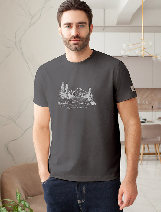 Совместные покупки Омск Мужская одежда Футболки — Vilatte Футболка из премиального хлопка с авторским принтом U49.045 серый_outdoo