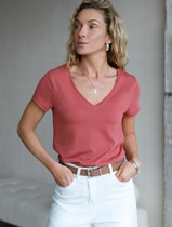 Футболка выполнена из премиального хлопка. Базовая модель с V-вырезом впишется в любой гардероб в любом сезоне. Наличие эластана в составе изделия гарантирует комфорт и формоустойчивость. На рукаве металлический логотип бренда.