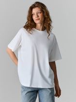 Футболка выполнена из трикотажа в широкий рубчик. Базовая модель с круглым вырезом и рукавом до локтя. Эластичный хлопковый трикотаж сидит по фигуре, не сковывает движений и очень комфортный в носке. Фактура вертикальных полос визуально стройнит и вытягивает силуэт. Базовое изделие хорошо впишется в любой гардероб. Идеально подходит для многослойных образов в базовый гардероб.