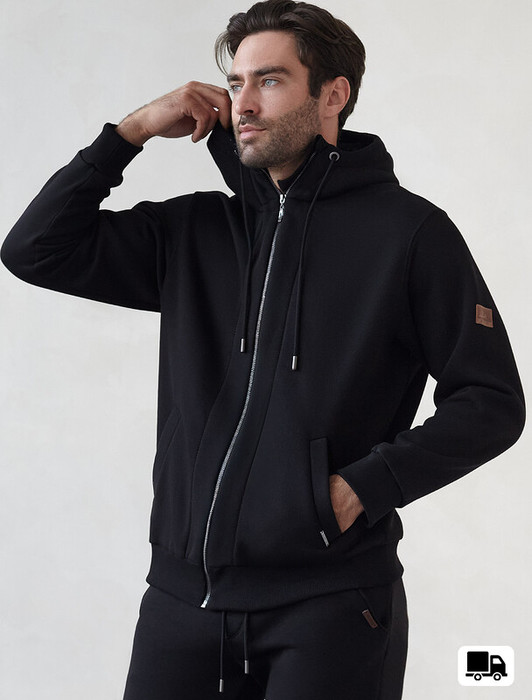 Vilatte Худи на молнии из премиального футера трехнитки с начесом U49.037 черный