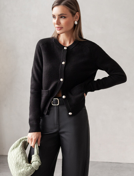Совместные покупки Омск Женская одежда Кофты, кардиганы — Vilatte Кардиган из пряжи с кашемиром D31.141 черный