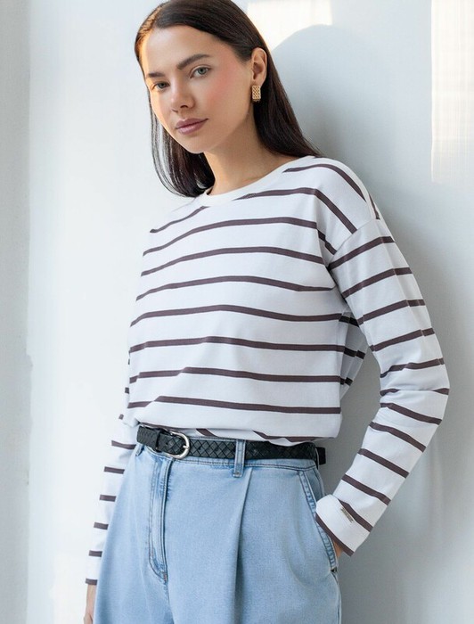 Заказать Vilatte Лонгслив с принтом из премиального хлопка с эластаном D49.148 белый-кофе