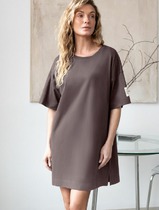 Платье прямого силуэта фактурной вязки выполнено из хлопка с добавлением кашемира.
