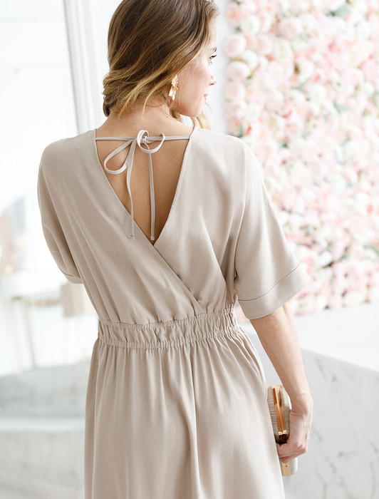 — 27.03 Vilatte Платье из плотного лиоцелла с поясом на резинке D22.244 светло-бе
