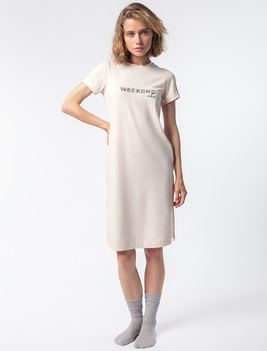 Домашнее платье выполнено из премиального хлопка с авторским принтом. Weekend vibes - настрой на выходные. Изделие приятно ощущается на теле, а разрезы по бокам обеспечивают удобную посадку не сковывая движений. Наличие эластана в составе изделия способствует формоустойчивости и меньшей сминаемости.