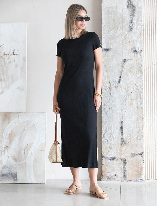 — Vilatte Платье из трикотажа в широкий рубчик D42.228 черный