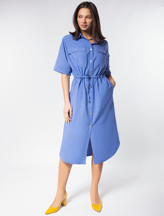 Совместные покупки Омск Женская одежда Платья — 27.03 Vilatte Платье-рубашка из плотного лиоцелла D22.209 васильковый
