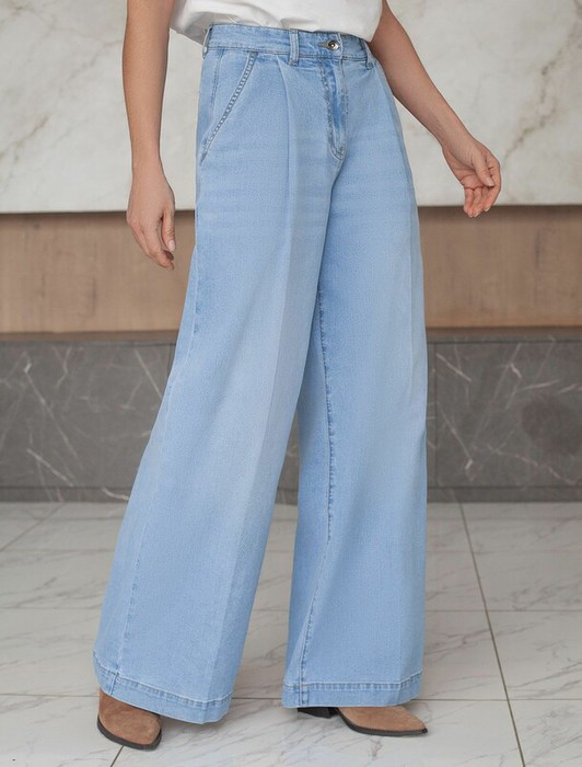 Заказать 27.03 Vilatte Широкие джинсы с защипами из эластичного денима D54.307 голубой