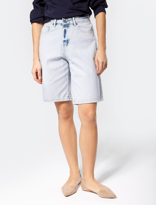 Шорты выполнены из эластичного денима. Комфортная длина подходит для любой фигуры. Мягкая прочная ткань хорошо пропускает воздух, а изделия из нее не растягиваются и надолго сохраняют заданную форму. Лучшая альтернатива джинсам в жаркое время года.