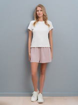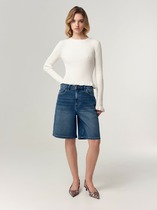 Шорты с легкой декоративной стиркой выполнены из эластичного денима. Модель с ложным гульфиком и поясом из эластичной резинки со шнурком из основного полотна. За счет эластана изделие хорошо тянется и гарантирует комфорт и формоустойчивость. Подходит для любой фигуры.
