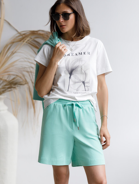 Совместные покупки Омск Женская одежда Шорты — Vilatte Шорты из тонкого премиального футера с эластаном D48.008 мятный