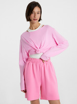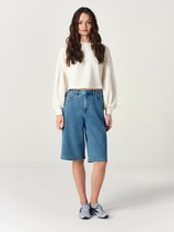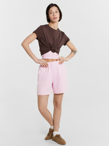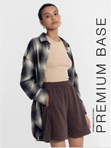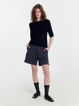 Шорты выполнены из футера двухнитки с эластаном. Модель прямого кроя дополнена боковыми карманами и одним задним карманом.  Пояс выполнен из эластичного трикотажа в рубчик. В пояс вставлен плоский хлопковый шнур в тон изделия с серебристыми наконечниками. Изделие дополнено металлическим логотипом бренда. Сочетается в костюме с жакетом D49.078, джемпером D49.079, D49.080 и футболкой D49.081
