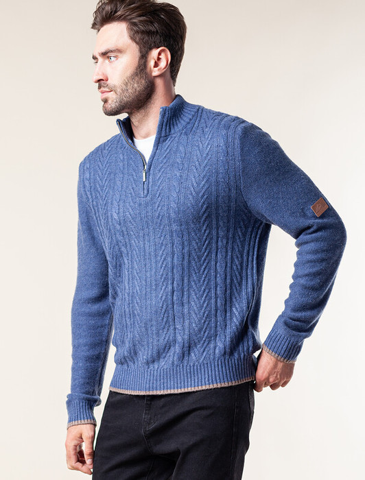 Совместные покупки Омск Мужская одежда Джемперы, свитеры — Vilatte Свитер фактурной крупной вязки с металлической молнией U39.012 синий