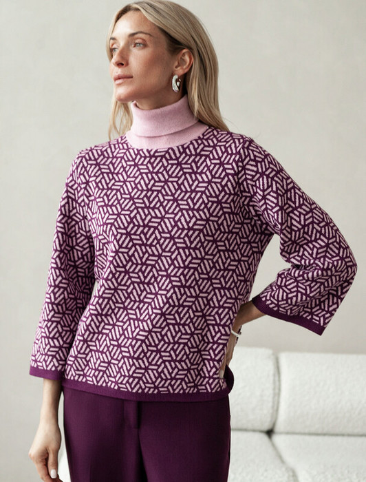 Совместные покупки Омск Женская одежда Джемперы, свитеры, водолазки — Vilatte Свитер жаккардовой вязки с кашемиром D34.208 пурпурный