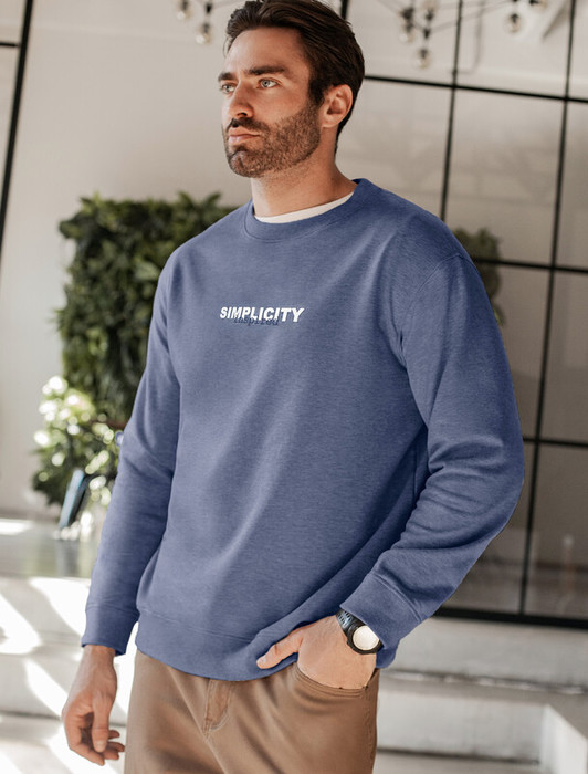 Совместные покупки Омск Мужская одежда Джемперы, свитеры — Vilatte Свитшот с авторским принтом из эластичного футера трехнитки U49.038 сини