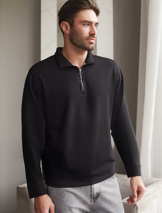 Совместные покупки Омск Мужская одежда Джемперы, свитеры — Vilatte Свитшот с воротом стойкой на молнии из эластичного футера двухнитки U49.