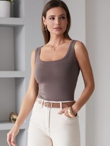 Совместные покупки Омск Женская одежда Майки, топы — Vilatte Топ из премиального хлопка с эластаном D43.162 кофе
