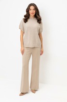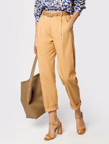 Свободные брюки из трикотажного костюмного полотна. Эластичный пояс на резинке с регулируемым шнурком из эко-кожи комфортно фиксирует изделие на талии.  Модель дополнена двумя боковыми и задним карманами.
