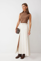 Vilatte Юбка прямого силуэта из искусственной замши D26.186 светло-бежевый