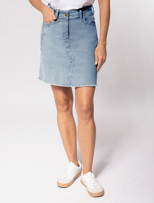 Vilatte Юбка из супер-эластичного денима с необработанным краем D56.043 голубой