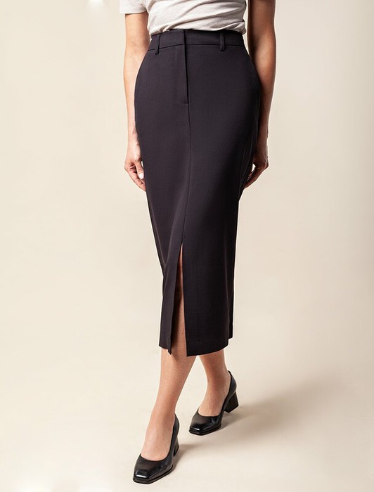 — 22.03 Vilatte Юбка миди с двумя разрезами из премиальной поливискозы с эластано