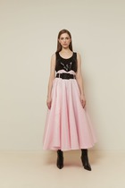 — Vilatte Юбка миди с разрезом из струящегося плотного сатина D26.205 черный