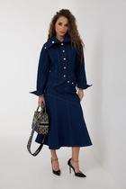 Юбка А-силуэта с застежкой на запАх выполнена из эластичного денима. Модель свободного кроя с посадкой на талии. Застежка на две пуговицы. Мягкий эластичный деним обеспечит комфорт и свободу движений. Хорошо сочетается с любым верхом и разной обувью.