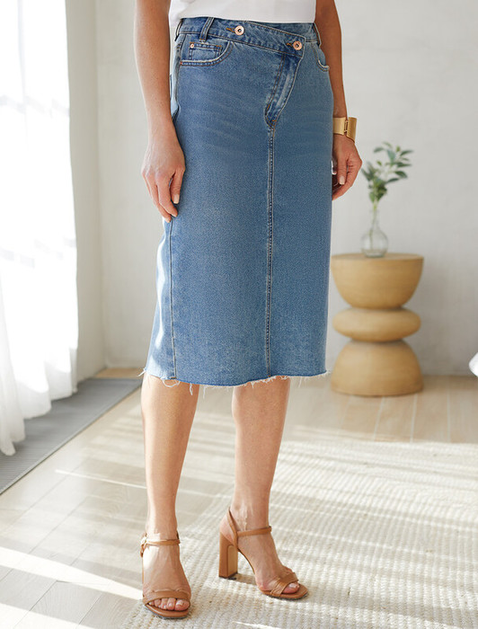 — 22.03 Vilatte Юбка с ассиметричной застежкой из эластичного денима D56.119 сини
