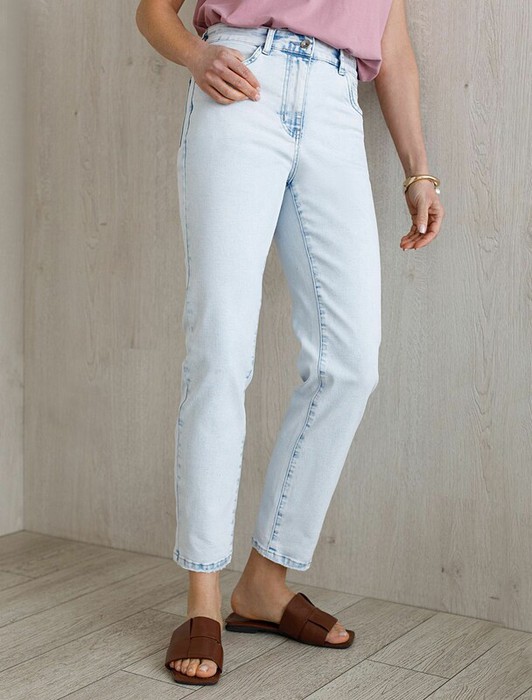 Совместные покупки Омск Женская одежда Джинсы — Vilatte Укороченные джинсы c декоративной стиркой из эластичного плотного денима