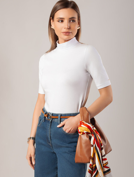 22.03 Vilatte Водолазка из премиального хлопка с эластаном D49.114 белый