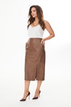 Юбка прямого силуэта выполнена узорной вязкой из мягкой хлопковой пряжи. Тонкий ажурный трикотаж идеально подходит для теплой весны и лета, в нем будет комфортно и не жарко. Модель дополнена разрезом на ноге и подкладкой из трикотажного полиэстера, такой материал гарантирует формоустойчивость юбки и скрывает излишнюю прозрачность. Сочетается в костюме с джемпером D33.007 и D39.629